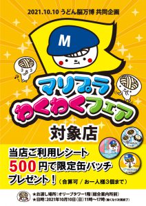 内容:うどん脳ベスト10(①新うどん脳お披露目会 ②えびまよっっうどん脳テーマソングライブ ③ギターリストMIYU ④タンバリストうどん脳 ⑤うどん脳3玉歌謡ショー ⑥ミニミニマルシェ ⑦うどん脳新商品開発 ⑧高松映えスポット ⑨うどん脳の歴史 ⑩うどん脳シネマ)、共同企画マリタイムプラザわくわくフェア