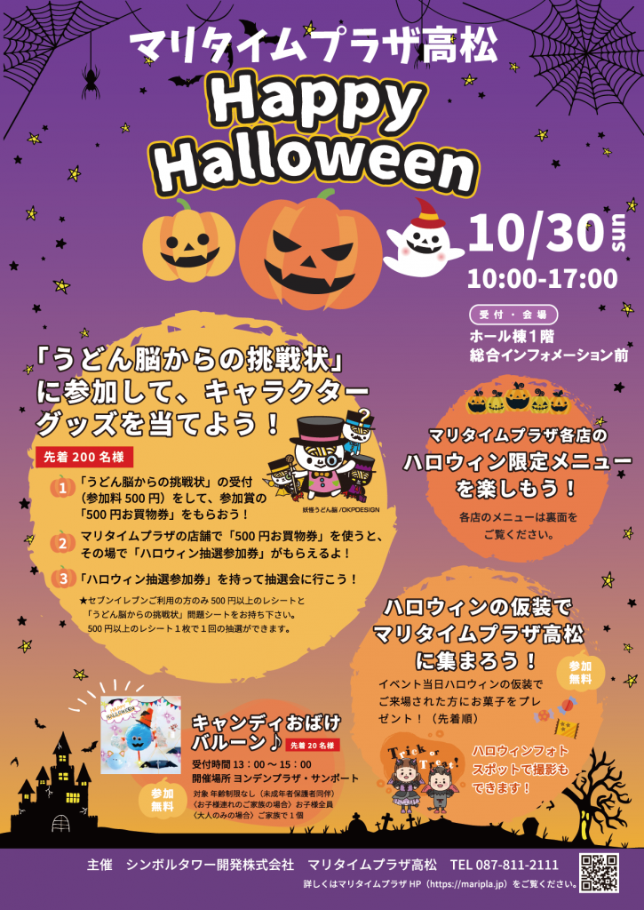 10月30日(日)に、マリタイムプラザでハロウィンイベントを実施します。