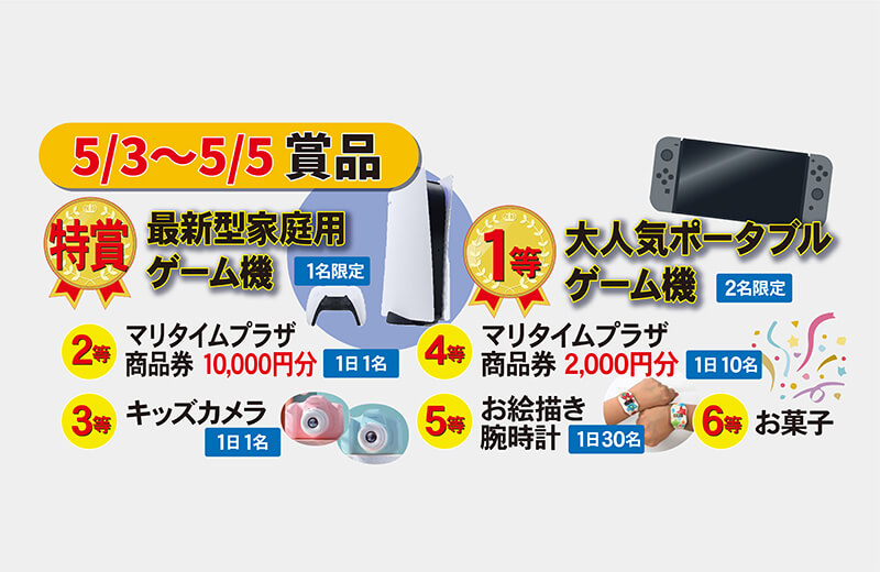※会場:5月1日(土)・5月2日(日)マリタイムプラザ2F、5月3日(月)~5月5日(水)マリタイムプラザ1F