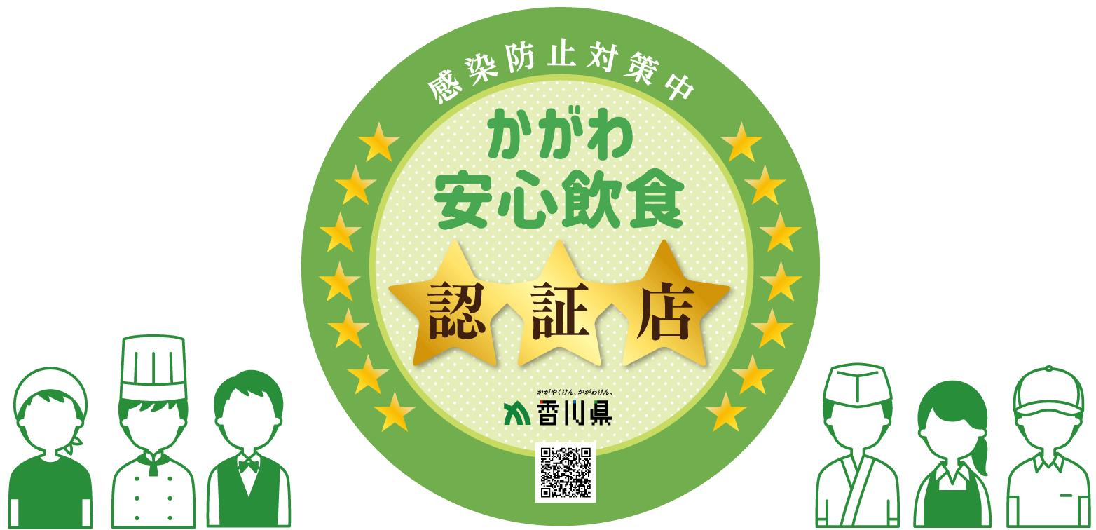 マリタイムプラザ高松の「かがわ安心飲食認証店」取得店舗はこちらです。