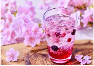 「サクラベリーベリーソーダ」、ふわりと優しい甘い香りが楽しめるサクラシロップと、デトックス効果が期待できるカモミールティーを