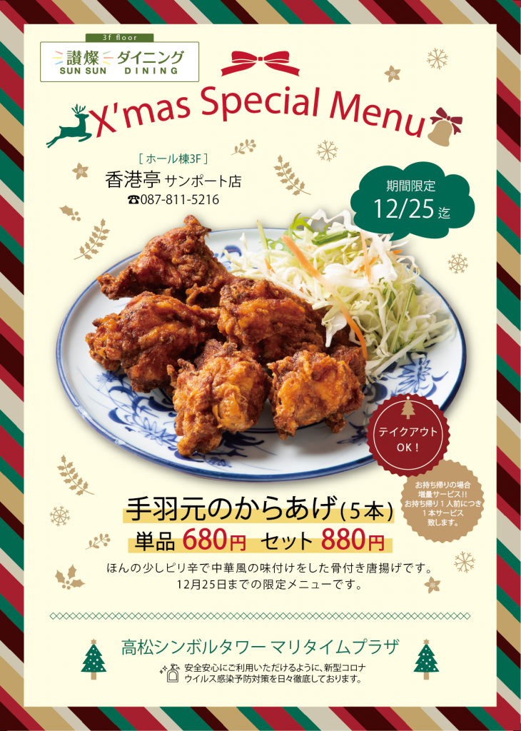 マリタイムプラザ高松からクリスマスメニューをピックアップしました!