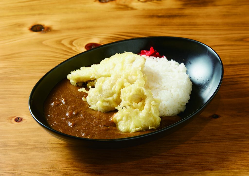 香川県の人気ブランド鶏を天ぷらにしたかしわ天をトッピング。カレーと良く合います。