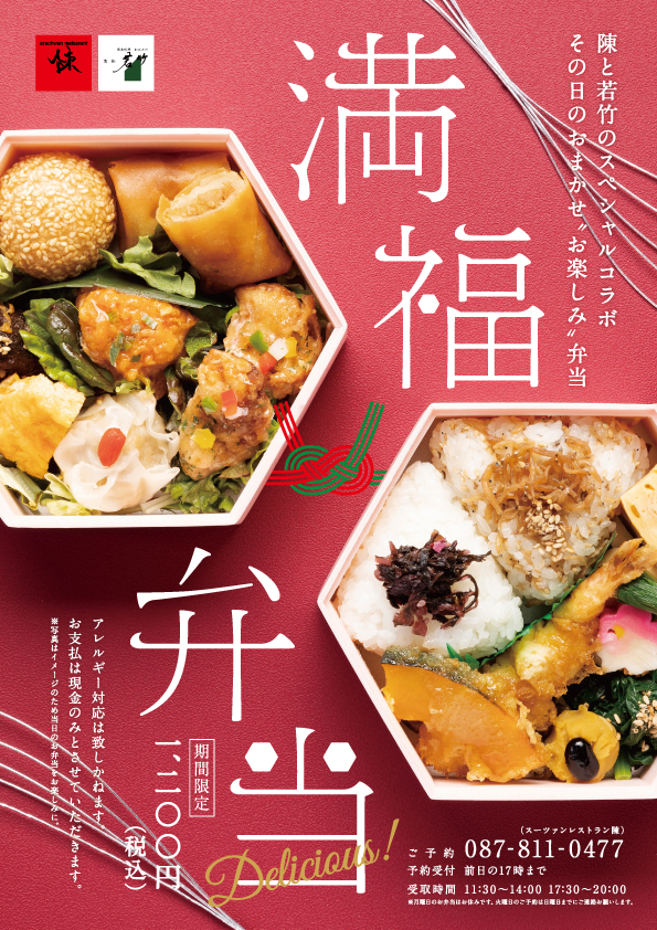 陳と若竹が初コラボ、「満福弁当」は、第1弾は販売を終了しました。ありがとうございました。